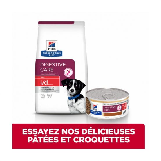 Hill’s Prescription Diet i/d Stress Mini Aliment pour Chien est un aliment diététique complet destiné à la réduction des troubles aigus d’absorption intestinale et à la compensation de la maldigestion et de l’insuffisance pancréatique exocrine chez le chien adulte. Cet aliment diététique a une teneur accrue en électrolytes, des ingrédients hautement digestibles et une faible teneur en matières grasses.