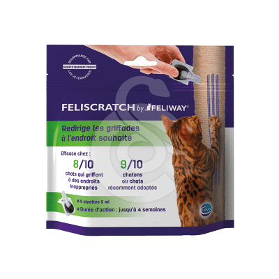 L’efficacité de FELISCRATCH by FELIWAY® a été démontrée dans la réduction des comportements de griffades verticales et horizontales inappropriés. FELISCRATCH by FELIWAY® est utile pour amorcer et diriger les griffades à un endroit bien défini (griffoir par exemple).