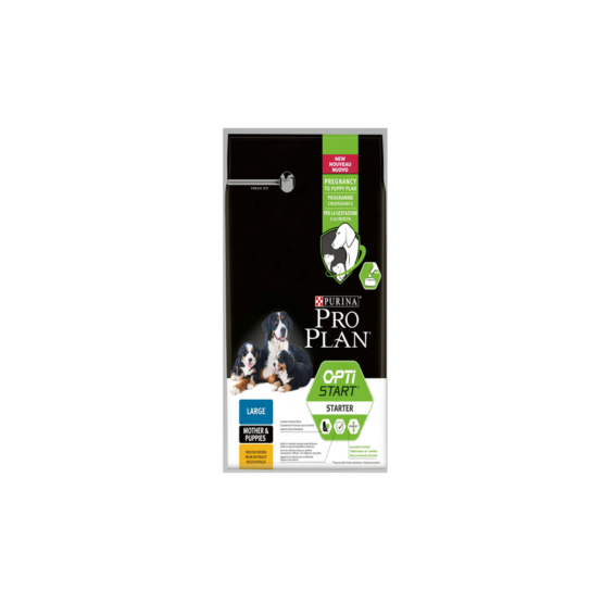 Pro Plan Dog Starter Large est un aliment sec complet pour chiots de grande taille dès l’âge de 4 semaines et pour les chiennes en Gestation/lactation, riche en poulet.