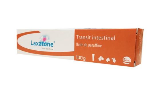 Laxatone est une composé d’huile de paraffine et de vaseline qui recouvrent la paroi intestinale et améliorent, par leur effet lubrifiant, le transit du bol alimentaire, évitant ainsi la formation des boules de poils ou de matières fécales dures.