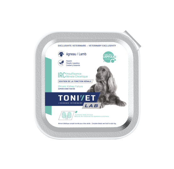 TONIVET LAB Humide Chien Rénal est une alimentation diététique en boîte conçue pour les chiens souffrant d’insuffisance rénale chronique ou temporaire.