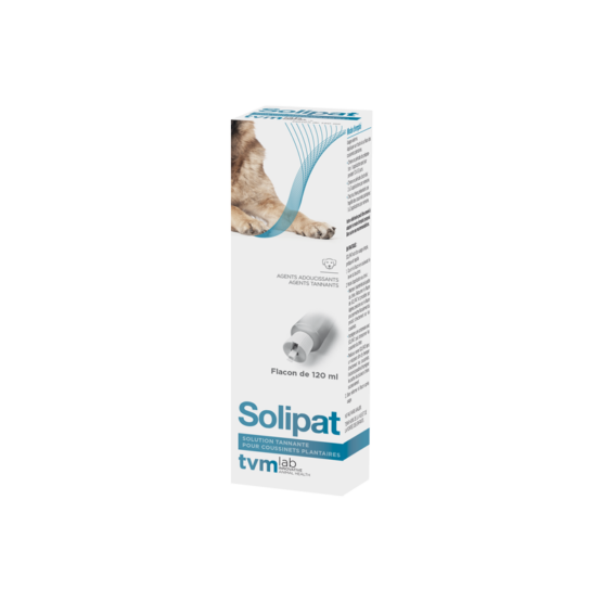 Solipat est une lotion tannante pour l’entretien et la protection des coussinets plantaires du chien.