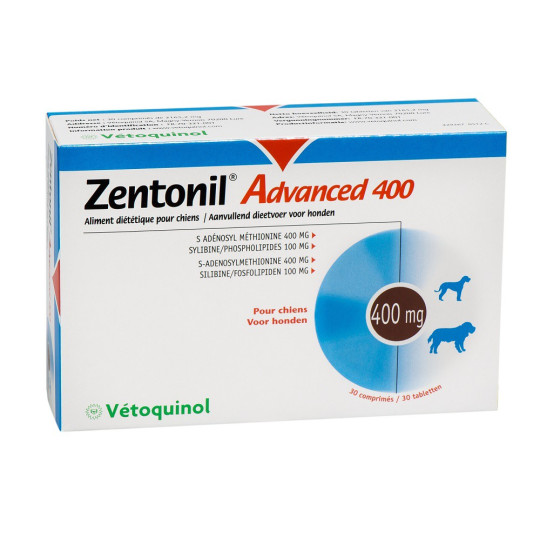 Le Zentonil Advanced est un aliment complémentaire diététique pour chien de plus de 20 kg contribuant au soutien de la fonction hépatique en cas d’insuffisance hépatique chronique.
