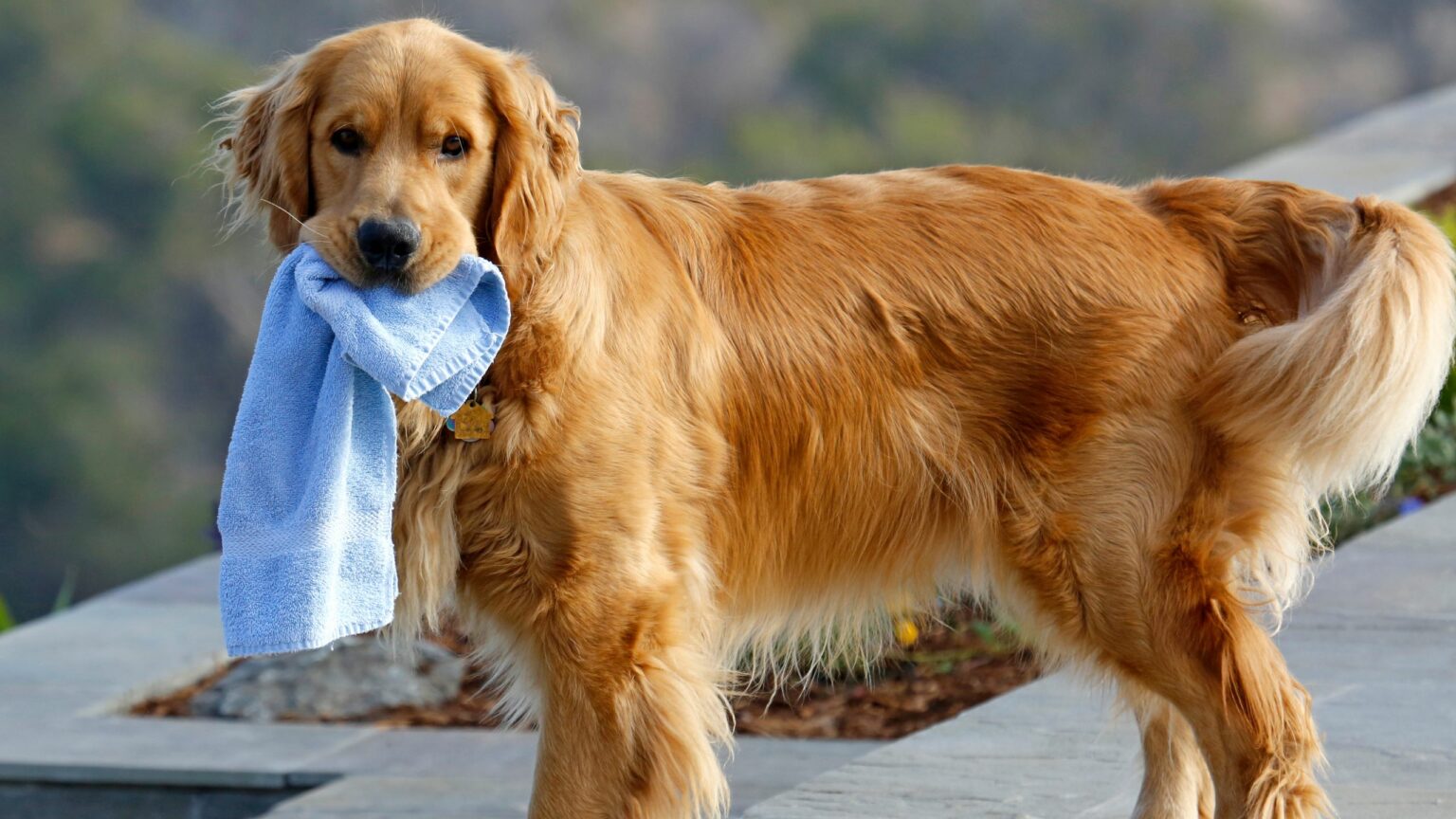 Si votre chien s’est baigné, utilisez un peignoir, surtout si vous rentrez de balade en voiture. Ensuite, en arrivant un brossage et un passage de mousse nettoyante sans rinçage suffiront (sauf s’il s’est baigné dans la mer, auquel cas il faudra le rincer complètement à cause du sel).