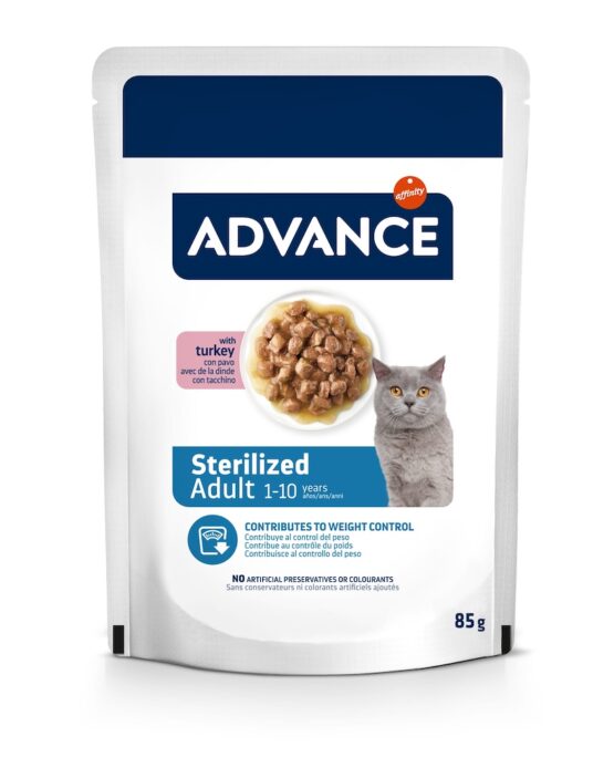 ADVANCE Wet Sterilized est une recette humide complète et équilibrée, spécialement formulée pour couvrir les besoins des chats adultes stérilisés.
