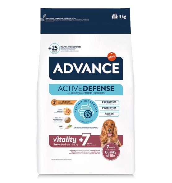 Caractéristiques des croquettes Advance Medium Senior Vitality 7+ pour chien :