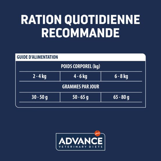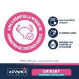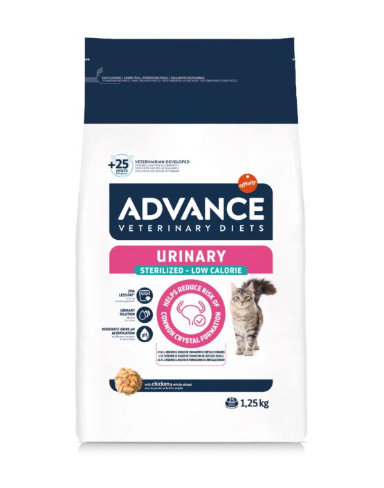 ADVANCE VETERINARY DIETS URINARY Sterilized Low Calorie est un aliment diététique complet pour chats adultes stérilisés. Avec un apport énergétique modéré et riche en fibres pour aider à contrôler le poids des chats stérilisés.