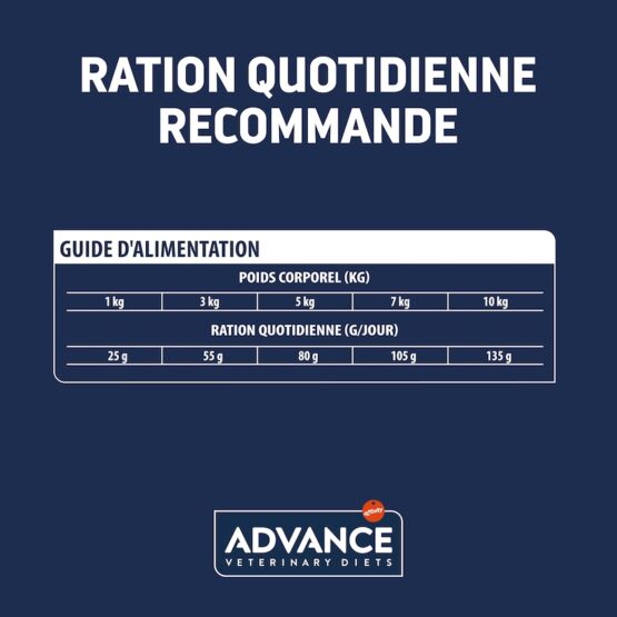 Les croquettes Advance Veterinary Diets Atopic contiennent de la truite et des pommes de terre comme sources sélectionnées de protéines et de glucides et fournissent des nutriments essentiels au chien. Cet aliment diététique fournit notamment des acides gras oméga 3, dont des EPA, DHA et de l’acide linoléique.