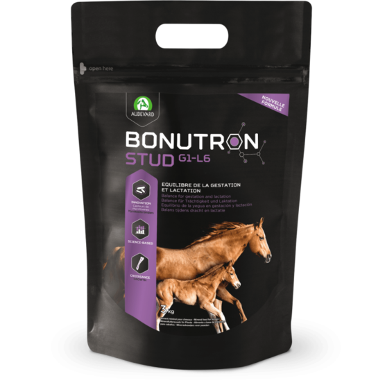 BONUTRON STUD G1 – L6 est un apport nutritionnel complémentaire adapté aux besoins des juments en gestation et allaitantes.