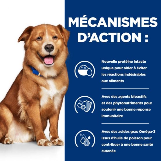 • Amélioration visible de la peau en 21 jours seulement chez les chiens souffrant d’allergies alimentaires.