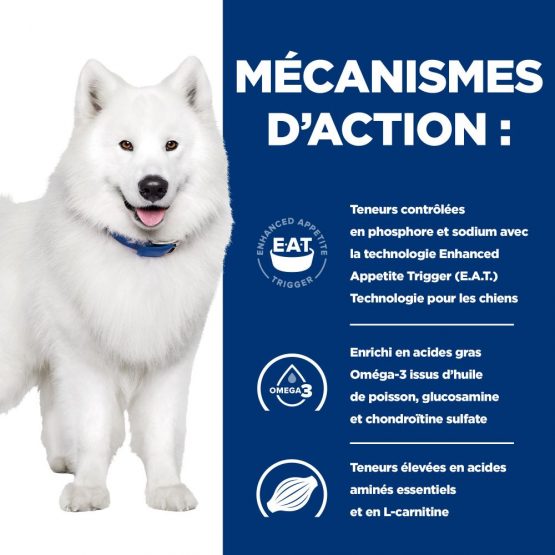 Prescription Diet k/d+Mobility Canine est une nutrition cliniquement prouvée pour soutenir la mobilité et améliorer la qualité de vie des chiens souffrant de maladie rénale.
