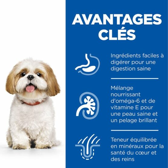 Hill’s Science Plan Canine Mature Small & Mini Poulet est spécialement formulé pour maintenir la mobilité et des organes vitaux en bonne santé chez les chiens de petites races. Contient des antioxydants à l’efficacité cliniquement prouvée, de la glucosamine et de la chondroïtine d’origines naturelles.