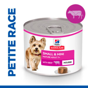 Hill’s Science Plan Small & Mini – Mousse pour Chien Mature – Petites et Très Petites Races au Bœuf est un aliment complet pour les chiens adultes matures de petite taille âgés de 7 ans et plus.
