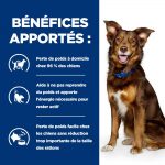 - Perte de poids sans privation – 96% des chiens ont perdu du poids en 2 mois à domicile, 90% des chiens ont terminé le programme de perte de poids.