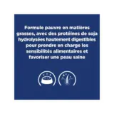 COMPOSITION : Dérivés d'origine végétale, extraits de protéines végétales (hydrolysat de protéines de soja 27%), huiles et graisses, minéraux, viandes et sous-produits animaux, fruits, graines.