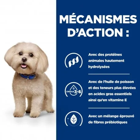 Prescription Diet z /d Canine Mini est cliniquement prouvé pour aider à réduire les symptômes cutanés et gastro-intestinaux causés par des allergies alimentaires.
