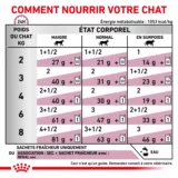 COMPOSITION : Viandes et sous-produits animaux, céréales, poissons et sous produits de poissons, sous-produits d’origine végétale, huiles et graisses, légumes, substances minérales, sucres. Sources de protéines : sous-produits de volaille (22 %), sous-produits de porc (17 %), saumon (4 %). ADDITIFS (KG)** : Additifs nutritionnels : Vitamine D3 : 200 UI, Fer (3b103) : 8 mg, Iode (3b202) : 0,34 mg, Cuivre (3b405, 3b406) : 2,7 mg, Manganèse (3b502, 3b503, 3b504) : 2,4 mg, Zinc (3b603, 3b605, 3b606) : 24 mg - Additifs technologiques : Clinoptilolite d’origine sédimentaire : 0,2 g. ** Ces valeurs reflètent seulement les niveaux ajoutés à la formule, et non ceux naturellement présents dans les composants de l’alimentation.