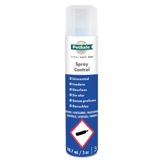 Cette recharge de spray inodore fonctionne avec tous les produits à jet PetSafe®, y compris avec les systèmes de dressage et les systèmes anti-aboiements.