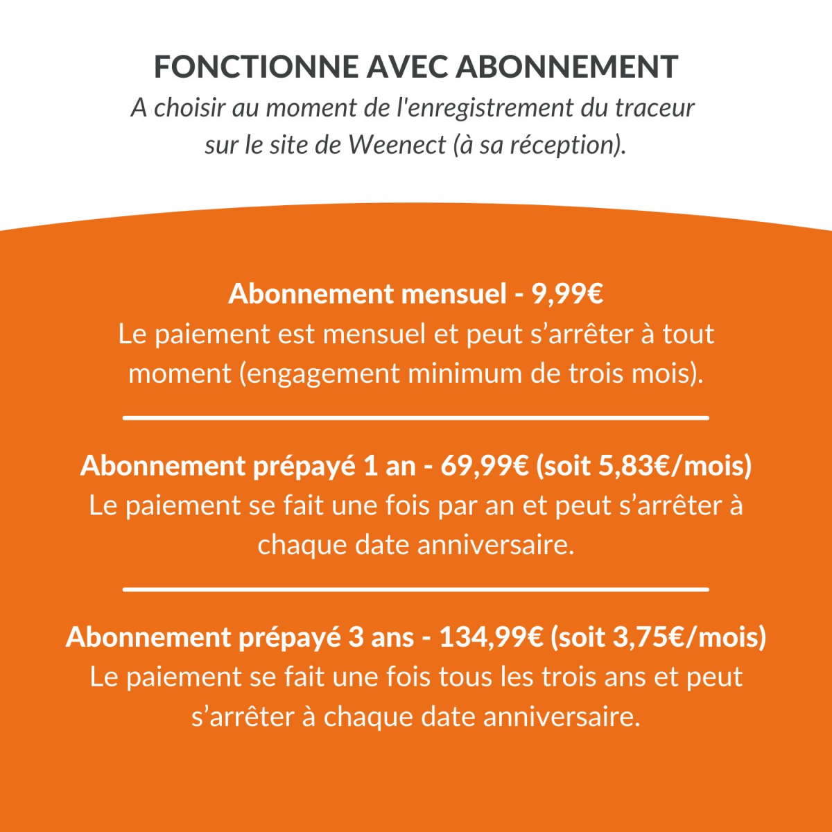 - 💳 ABONNEMENT REQUIS- Le traceur GPS est équipé d’une carte SIM (fournie). Il nécessite donc un abonnement pour couvrir les frais de service. Les abonnements disponibles (à partir de 3,75 EUR par mois) sont : abonnement mensuel (engagement de minimum 3 mois), abonnement prépayé 1 an, abonnement prépayé 3 ans.