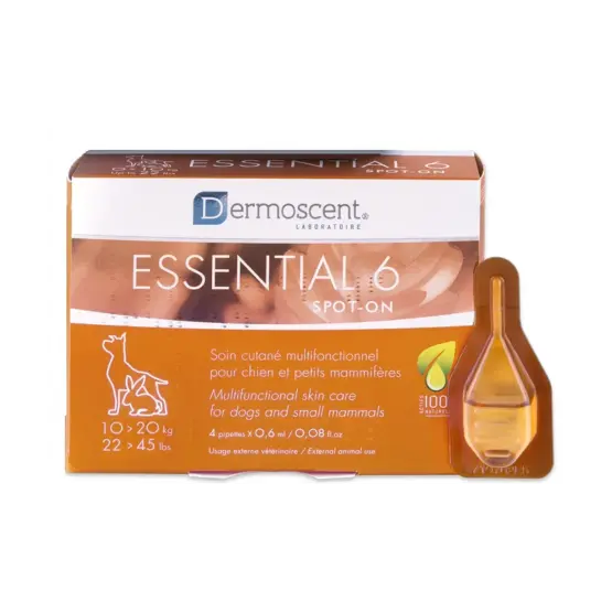 Dermoscent® Essential 6® spot on est un soin multifonctionnel breveté pour chien avec des actifs d’origine naturelle.