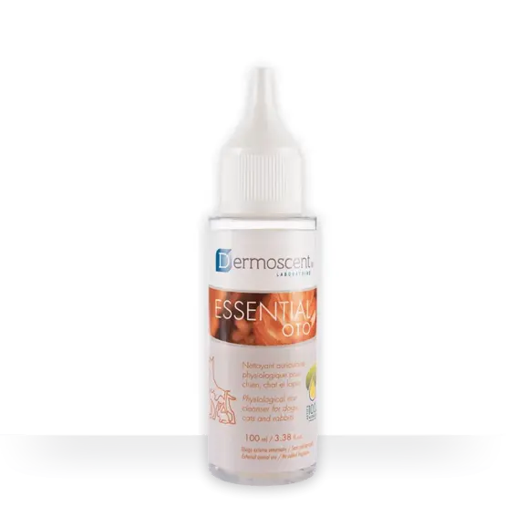 Dermoscent® Essential Oto® est un nettoyant physiologique spécifiquement conçu pour l’hygiène régulière des oreilles des chiens, chats et lapins avec un embout twist pratique.