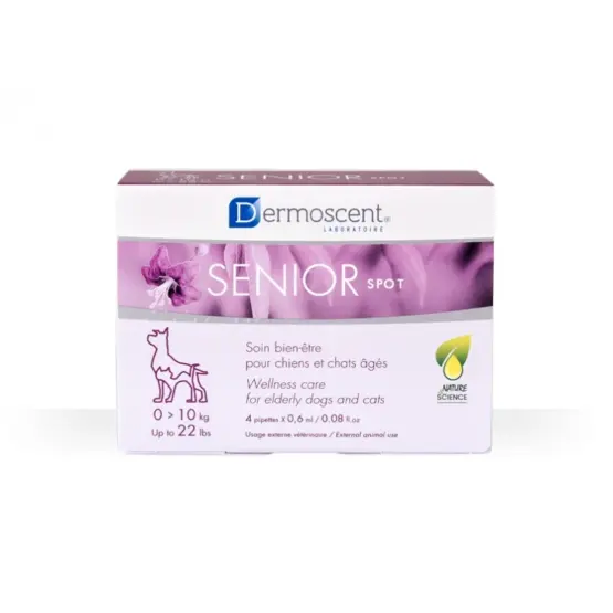 • Aide à lutter contre les signes du vieillissement cutané (peau sèche, fragile, pellicules, poils ternes/cassants, perte de poils, mauvaise odeur, etc.).