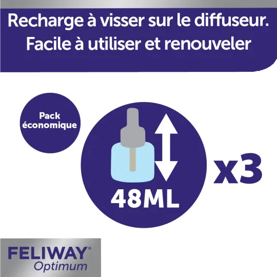Feliway optimum pack 3 recharg. 48 ml 21663.33€ / kg à partir de 64.99€