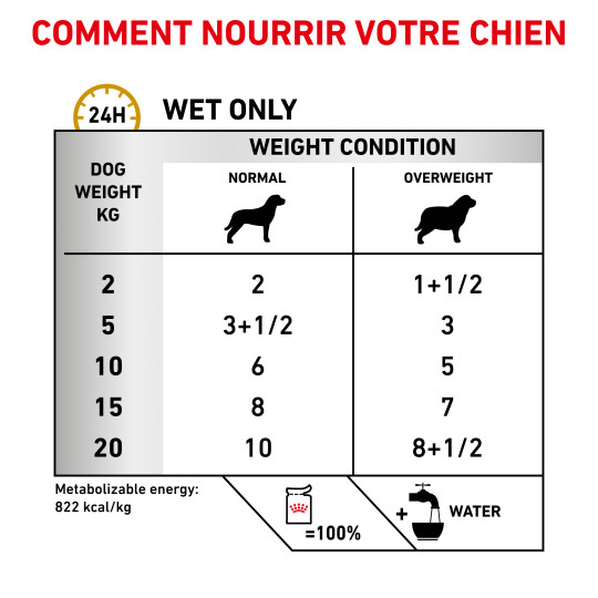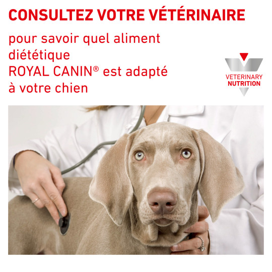 Cet aliment est destiné à la prise en charge nutritionnelle d’une maladie. Pour la santé de votre chien, il est recommandé de consulter votre vétérinaire et de respecter scrupuleusement ses recommandations nutritionnelles.