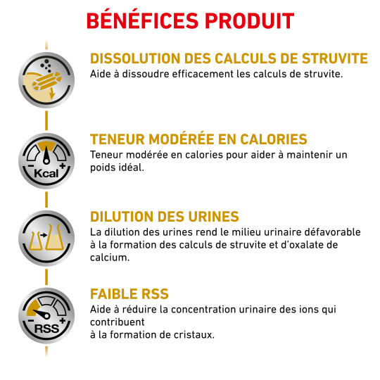 • Gestion de la cristallurie de struvite secondaire (en association avec une antibiothérapie adéquate)