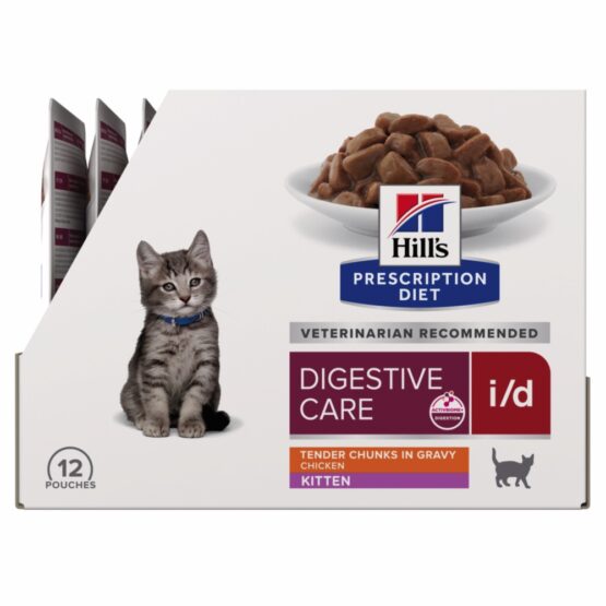 Hill’s Prescription Diet i/d – Aliment pour Chaton est un aliment diététique complet hautement digestible formulé pour réduire les troubles de l’absorption intestinale, et compenser la mauvaise digestion et l’insuffisance pancréatique exocrine chez le chaton.