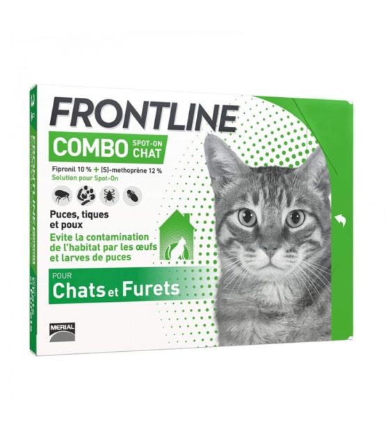 FRONTLINE Spot-On Combo permet de lutter contre les parasites du chat. Il est efficace contre les puces, les œufs et larves de puces grâce à sa formule enrichie à l’IGR, les poux du chat et les tiques.