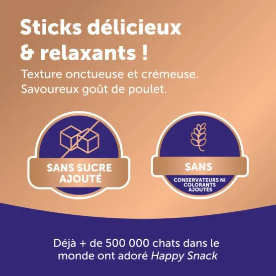 Friandise Happy Snack by Feliway sous forme de pâte alimentaire onctueuse et relaxante saveur saumon pour chat.