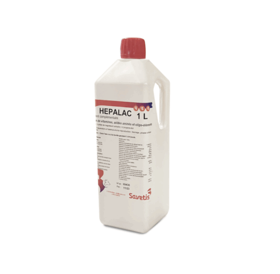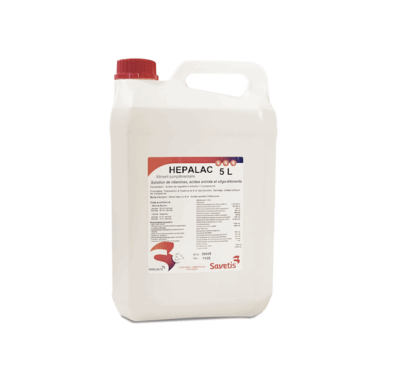 Hepalac liquide est un complément diététique buvable pour bovins, ovins, caprins, porcins, équins, volailles et lapins.