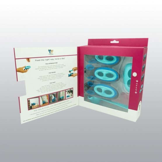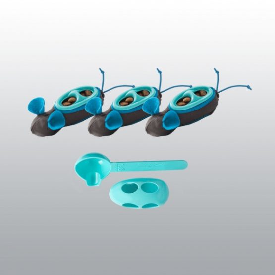 – 3 souris en tissu (dans lesquelles on glisse le distributeur), pour stimuler la sensation tactile d’une proie permettant à votre chat de saisir, griffer et utiliser ses dents comme il le ferait pour la chasse,
