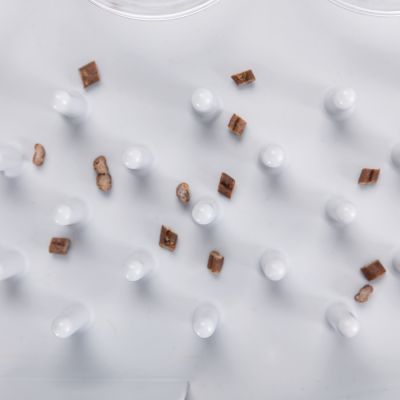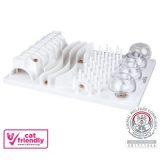 1 le module sphérique : pour inciter votre chat à utiliser son odorat et son toucher. Il doit trouver l’ouverture des sphères et en sortir les friandises.