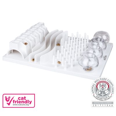 Un jeu d’intelligence signé Helena Dbalý adapté à tous les chats – 5 activités pour stimuler le corps et l’esprit, lavable au lave-vaisselle.