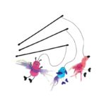 Jouet en forme de canne à pêche avec un petit oiseau et des plumes. Garni d’herbe à chat, ce jouet vous permet de jouer avec votre chat, de le voir bondir et ruser pour attraper l’oiseau.