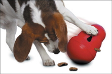 • jouet en forme de poire pour chien à remplir de croquettes ou de friandises