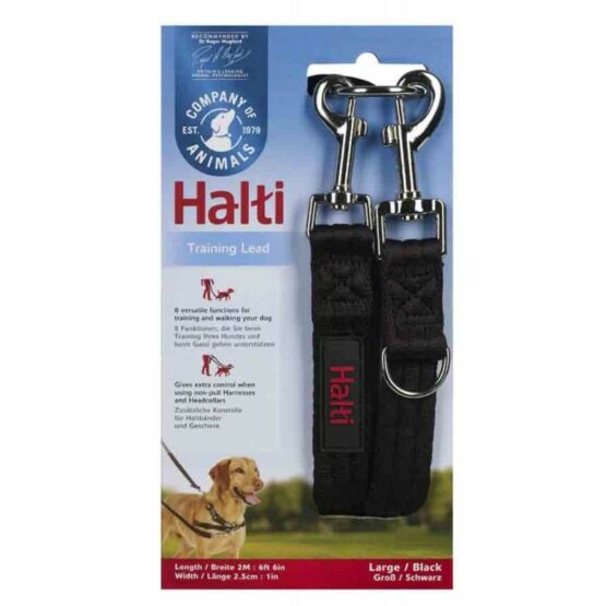 Laisse multifonctions en nylon doublé pouvant être utilisée comme outil d’éducation ou simple laisse. Utilisée avec un licol ou un harnais Halti, cette laisse permet un double contrôle particulièrement effi cace de l’animal.