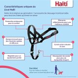 Le licol de dressage Halti possède la particularité d’avoir un effet muselière qui referme la mâchoire de votre chien lorsque celui-ci exerce une trop forte traction sur sa laisse. L’anneau se relâche dès que l’animal arrête de tirer et lui permet d’ouvrir de nouveau sa gueule.