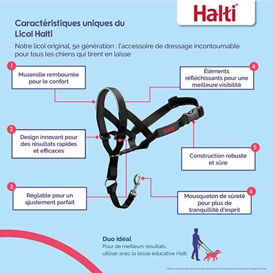Le licol Halti est réputé pour être un accessoire simple et efficace pour éduquer son chien de manière positive. Il suffit de l’enfiler à son animal pour que celui-ci se laisse naturellement guider par vous, ce qui facilite considérablement l’entraînement.