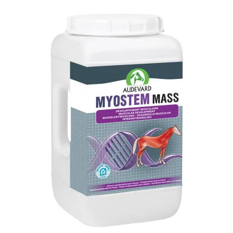 • Pour optimiser les résultats de MYOSTEM MASS, il est important d’avoir une ration riche en glucides et de donner le produit dans les heures suivant l’effort afin qu’il ait été assimilé au moment de la synthèse protéique. Si le cheval ne travaille pas ou peu, préférez plutôt BO YEA SACC pour les besoins intensifs, MYOSTEM MASS et BO YEA SACC pouvant être associés.