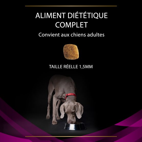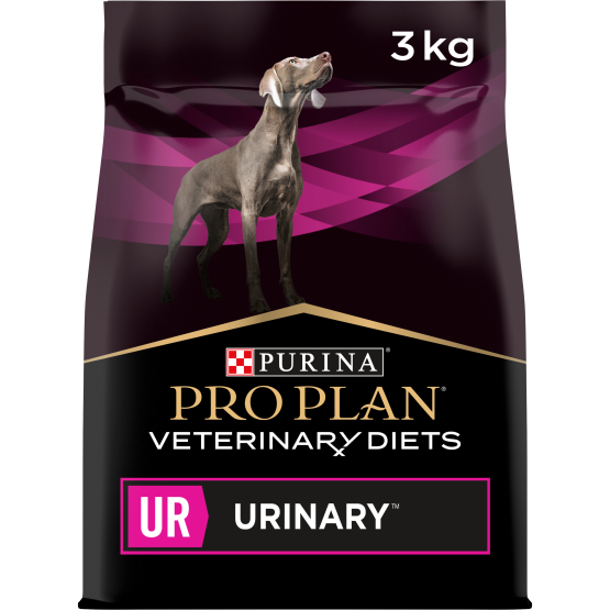 Pro Plan Veterinary Diet Canine UR est un aliment vétérinaire complet très appétent, qui aide à dissoudre et à prévenir l’apparition de calculs urinaires de struvites chez le chien.