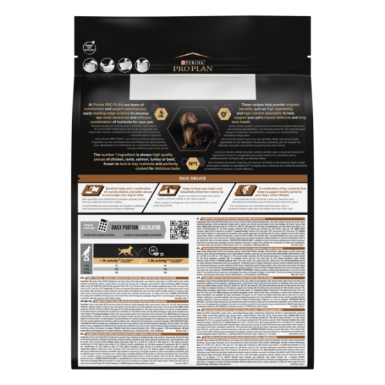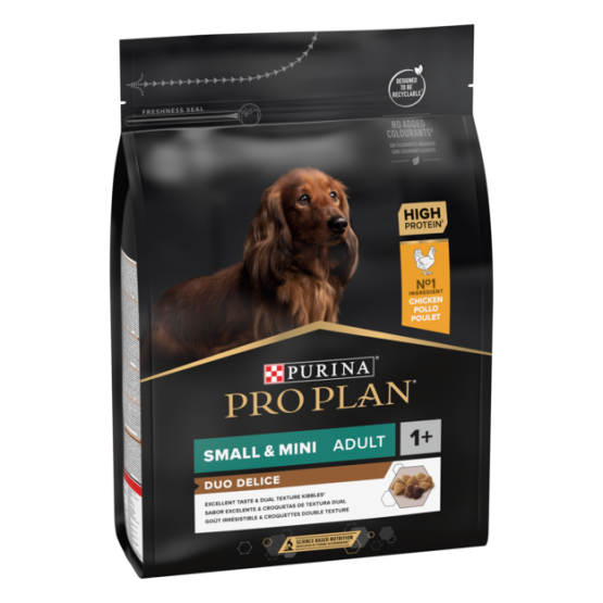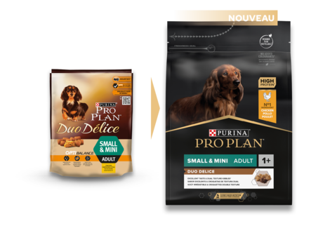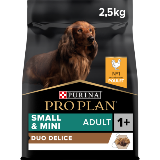 Duo Delice offre une combinaison unique de petites croquettes croustillantes et de tendres petits morceaux effilés pour une alimentation complète chez le chien de petite taille.