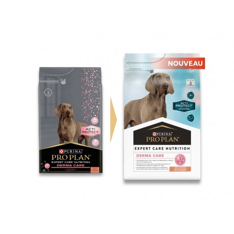 Pro Plan Expert Care Derma sont des croquettes complètes et équilibrées adaptées à l’alimentation quotidienne du chien.