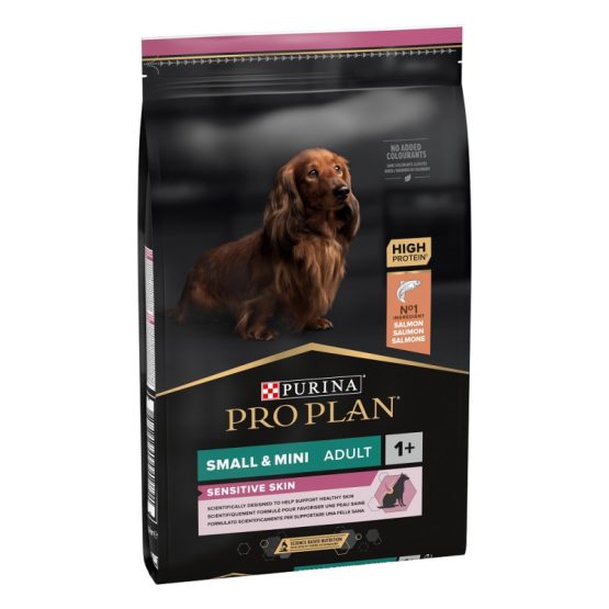 Les croquettes PURINA PRO PLAN Small & Mini Adult Sensitive Skin avec offrent une alimentation complète et contiennent des nutriments essentiels scientifiquement prouvés pour aider à maintenir une peau saine et un pelage brillant.