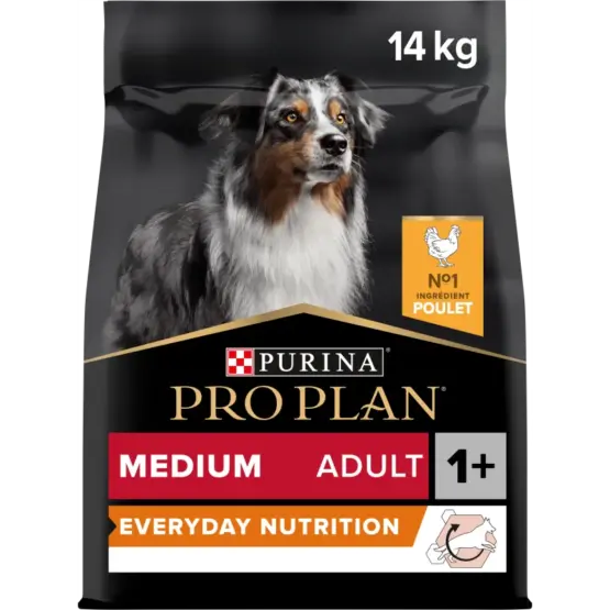 Aliment complet pour chien adulte de taille moyenne. Combinaison de nutriments spécialement sélectionnés, avec des teneurs adaptées pour les chiens de tailles et morphotypes différents afin de soutenir leurs besoins spécifiques et les aider à rester au mieux de leur forme.