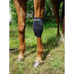 Cette genouillère est facile à appliquer, son extérieur est en néoprène robuste. Elle est à utiliser uniquement au repos et aidera à prévenir engorgements et blessures. Afin de minimiser le risque de glissement, nous recommandons de mettre une bande de repos sous la protection