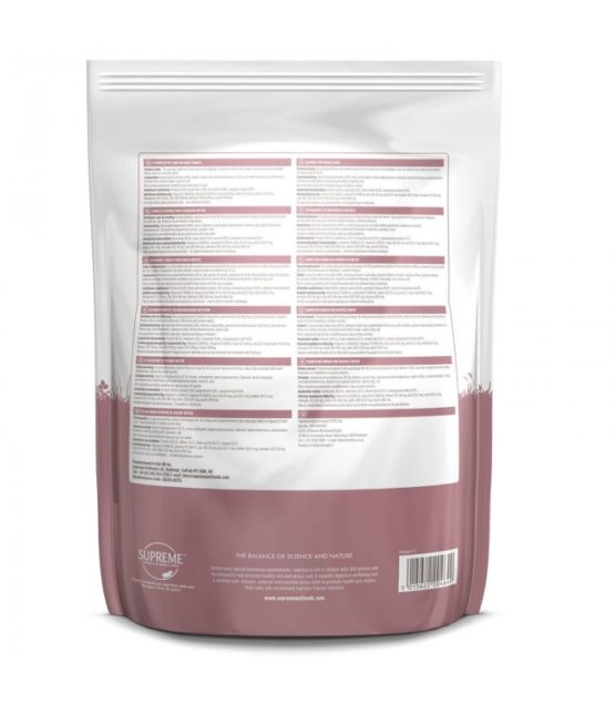 Cet aliment est présenté sous forme d?extrude? mono-granule? pour éviter le tri et l?alimentation sélective. Riche en délicieux poulet (43 %), il procure une teneur élevée en protéines (36 %) qui assurent la vitalité? de l?animal. Recommande? par les vétérinaires, il contribue a? la bonne santé? dentaire, favorise le bien-être digestif et sa formule sans sucres ajoutés aide a? maintenir un poids de forme. Enrichi en vitamines et mine?raux, cet aliment contient de la taurine, un acide amine? essentiel au bon fonctionnement du corps. Il contient des graines de lin, une source naturelle d?Ome?ga 3 et 6, pour une peau saine et un pelage brillant Cet aliment tre?s appe?tent est entièrement extrude? pour une assimilation aisée des nutriments.