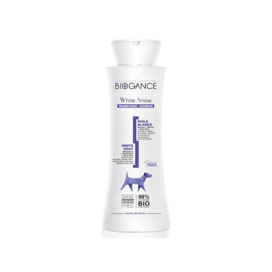 Le shampooing WHITE SNOW est spécialement formulé pour chien et chat aux poils blancs.